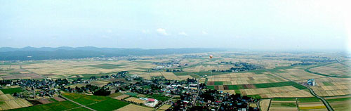 着陸したばかりのこんな格好で失礼します。 熱気球クラブの「曙屋 風太郎社中」と申します。 (あげぼのや ふうたろうしゃちゅう) 休日の早朝、のどかな越後平野の空をバーナーの 音と異様な物影でお騒がせしてごめんなさい。 越後平野を飛び始めてから20数年の月日が経ちました。